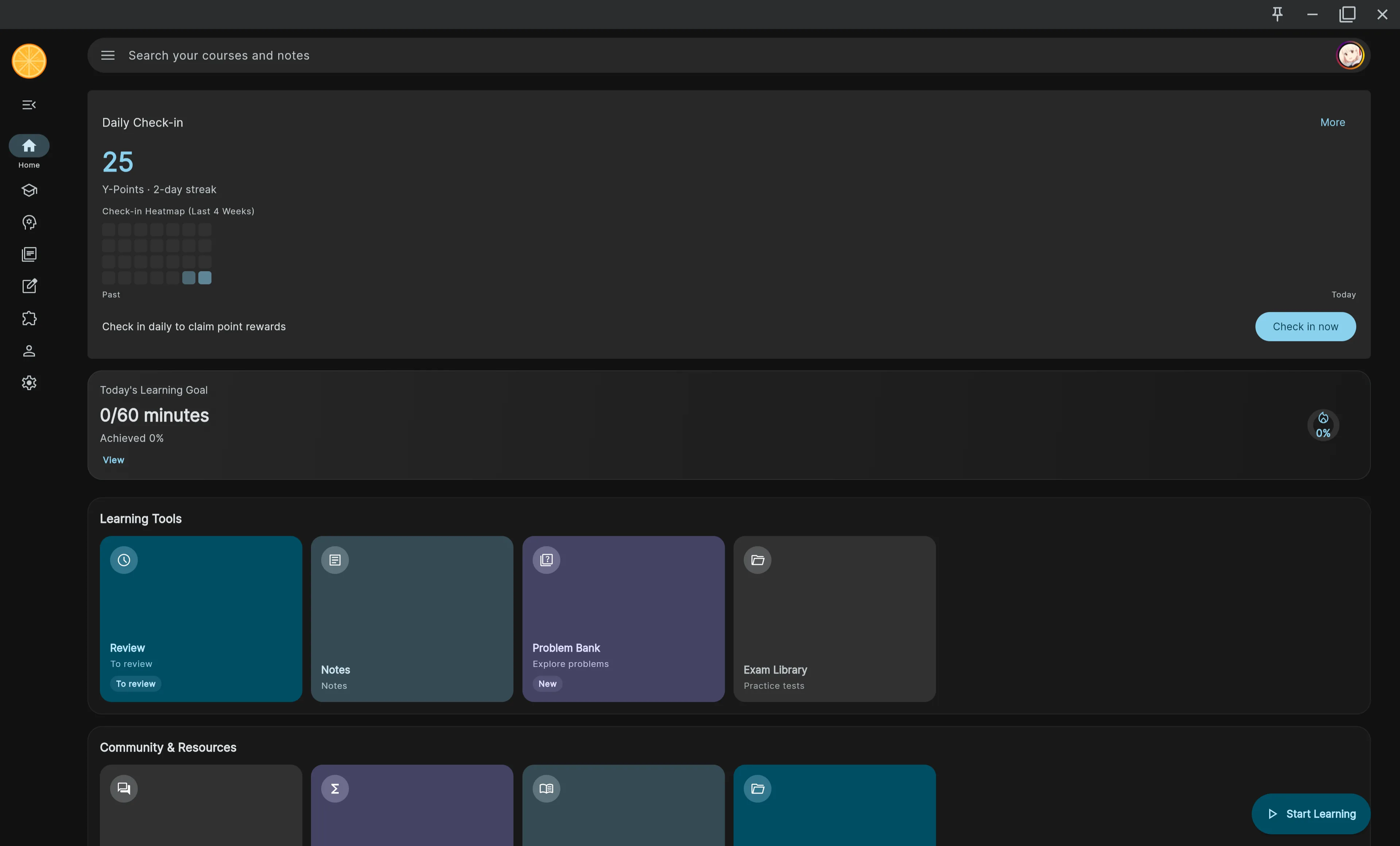 Learning home, course detail, section reading, and roadmap surfaces keep structured study resumable with visible progress.